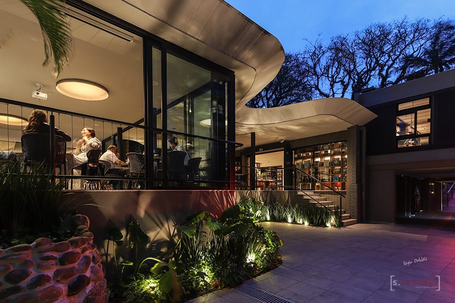 Cada detalhe do projeto foi pensado para valorizar a experiência dos visitantes, desde a leitura tranquila entre prateleiras, até o momento de degustar um bom vinho na adega ou relaxar no café.